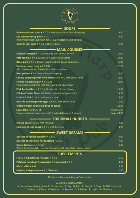 The Golden Harp Simmering Irish Pub Coffeehouse Restaurant Live Stage Wien