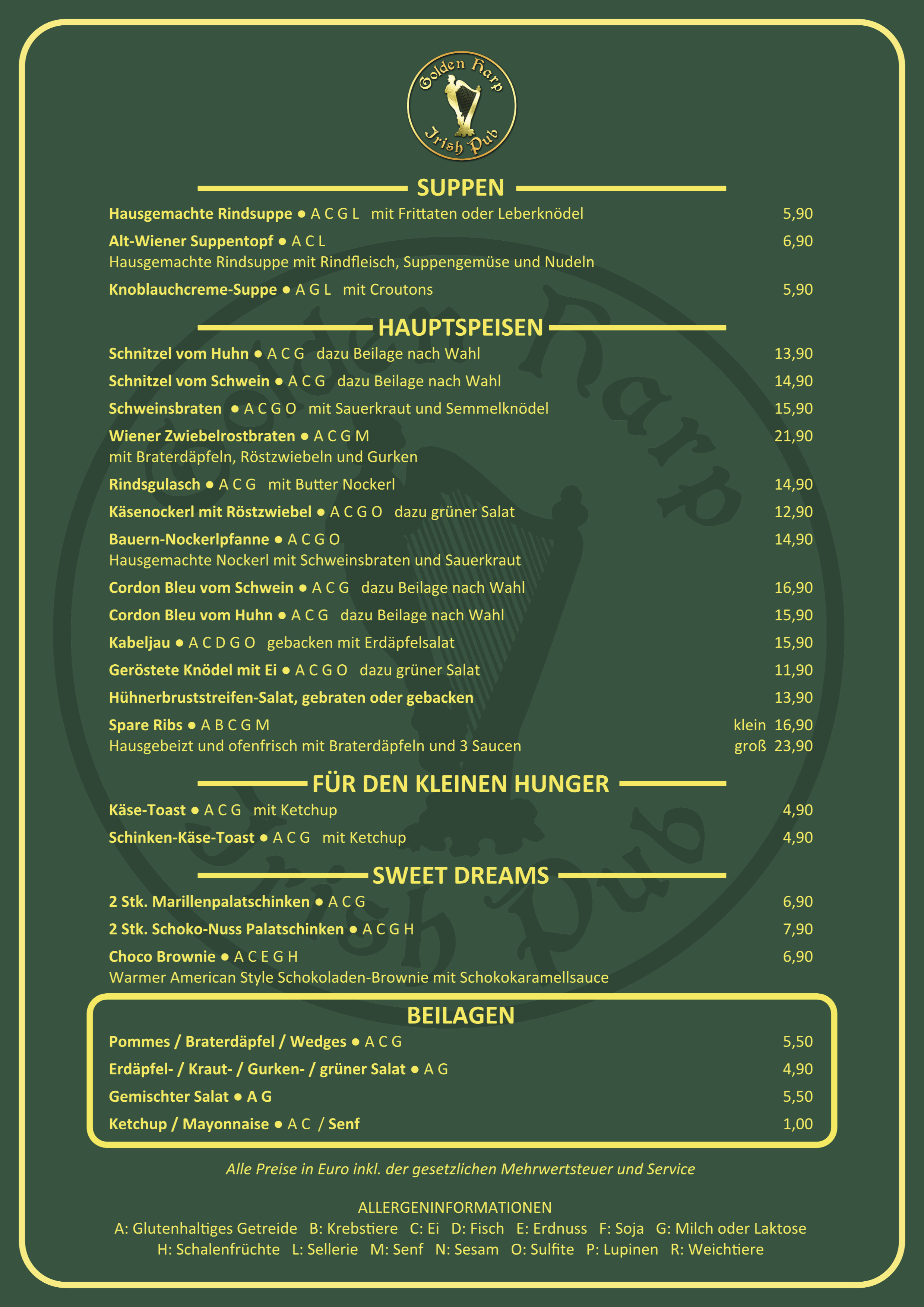 The Golden Harp Simmering Irish Pub Coffeehouse Restaurant Live Stage Wien